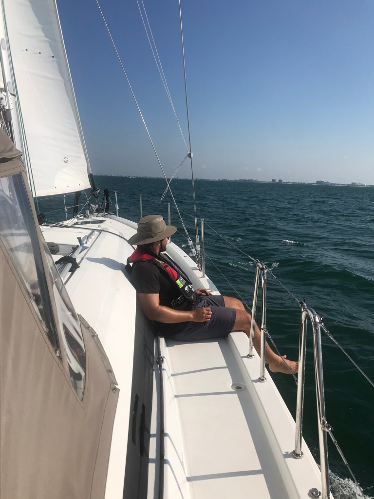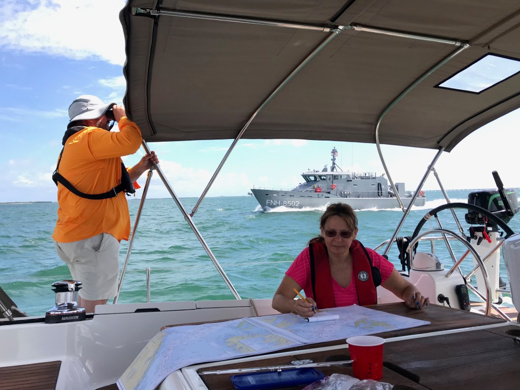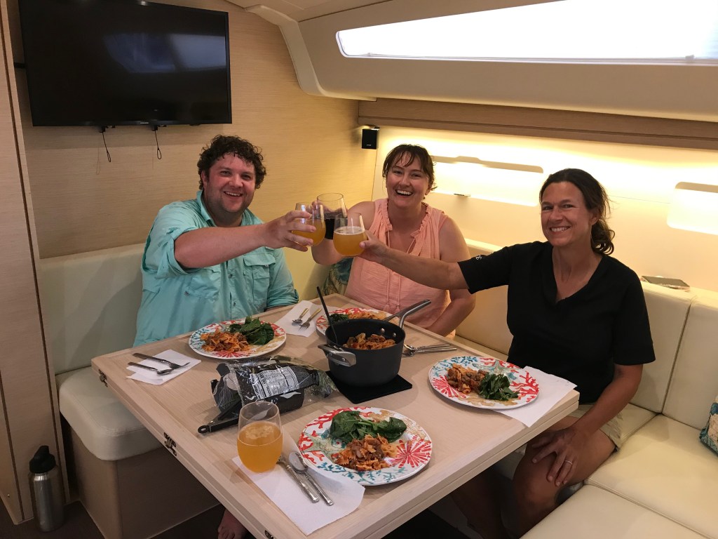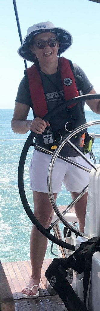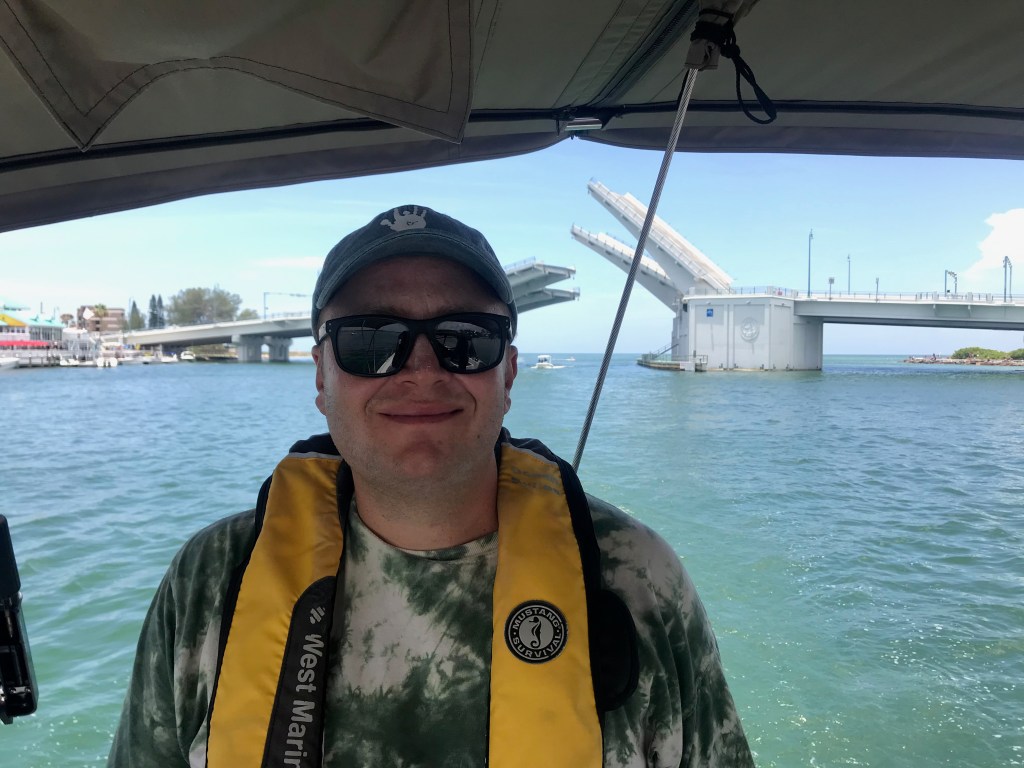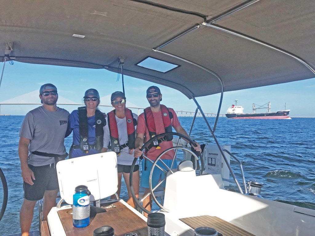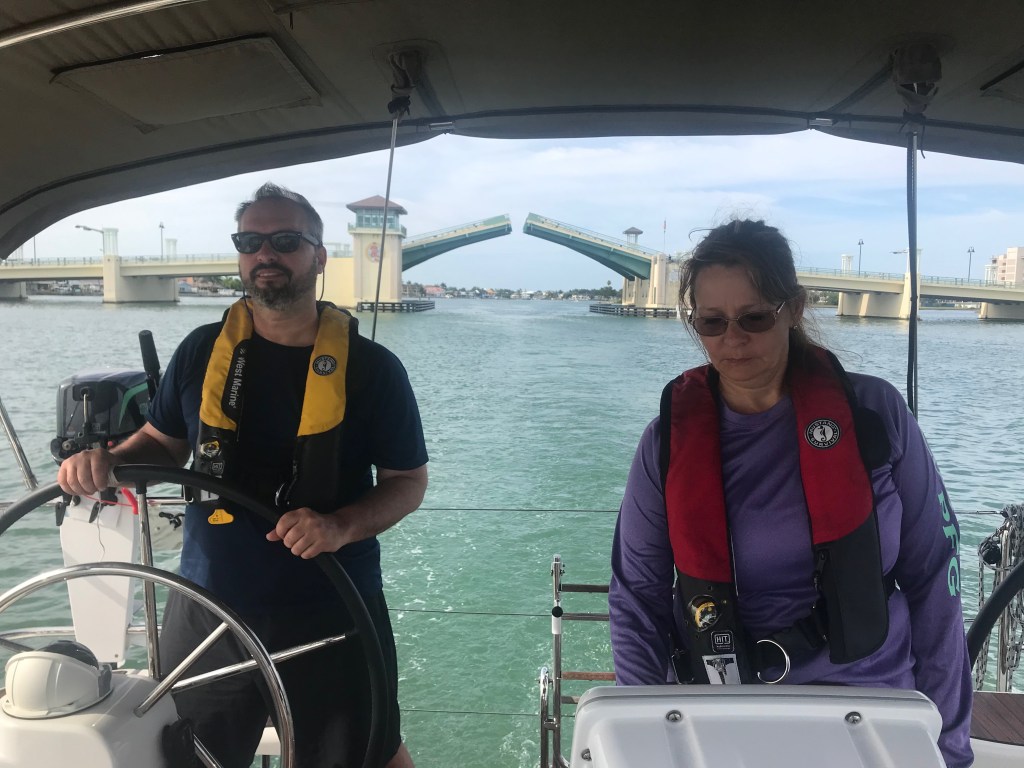Jeaneen and Jason in chargeJon, Amy, Alex, Margarita, and Max enjoying a day with the commercial vesselsElizabeth at the helm in the Gulf of MexicoSwimming fun off Egmont Key, Tampa BayJason and Jeaneen on watch for the bascule bridgeAmazing dinner by Kricket and LindsayKoa in the Gulf of Mexico – 100+ miles offshore