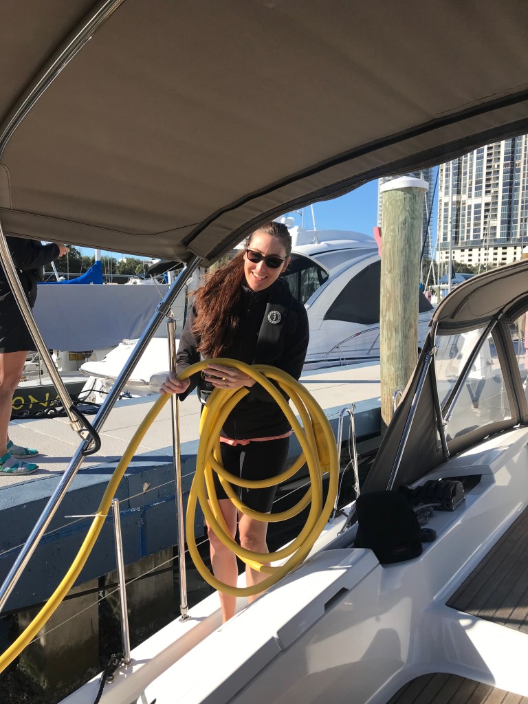 Mike, Amanda, and Cheryl on Tampa BayCaptain Cheryl and the Roseway in St. CroixJonathan enjoying an 8 knot ride off St. Petersburg beachMoline managing the dockside powerKat at the helm through the bascule bridgeComing back to Koa in Pass-a-grille, FloridaKoa in Cortez, Florida